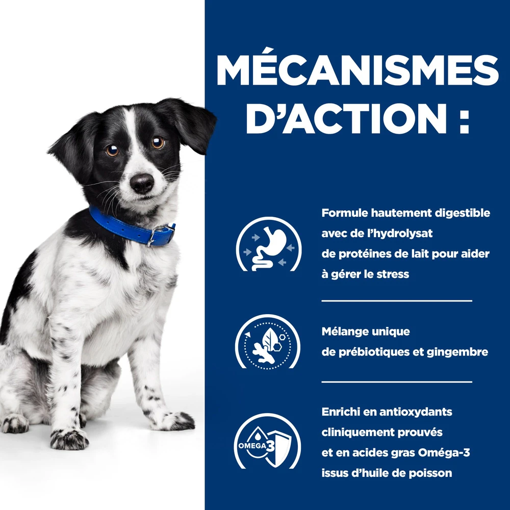 Les vétérinaires et nutritionnistes Hill’s ont développé Hill’s Prescription Diet i/d Stress Aliment pour Chien spécialement formulé pour aider à apaiser les comportements liés au stress, notamment les troubles digestifs chez les chiens de moins de 14 kg.