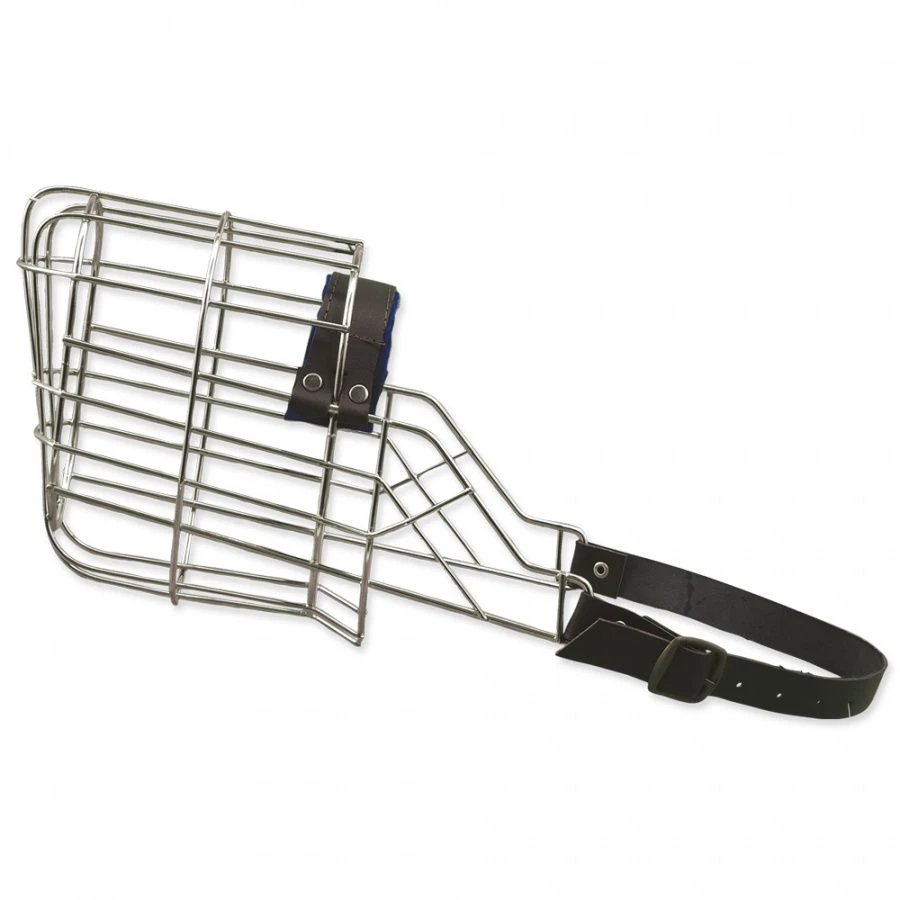 Museau en métal avec lanières de cuir.
