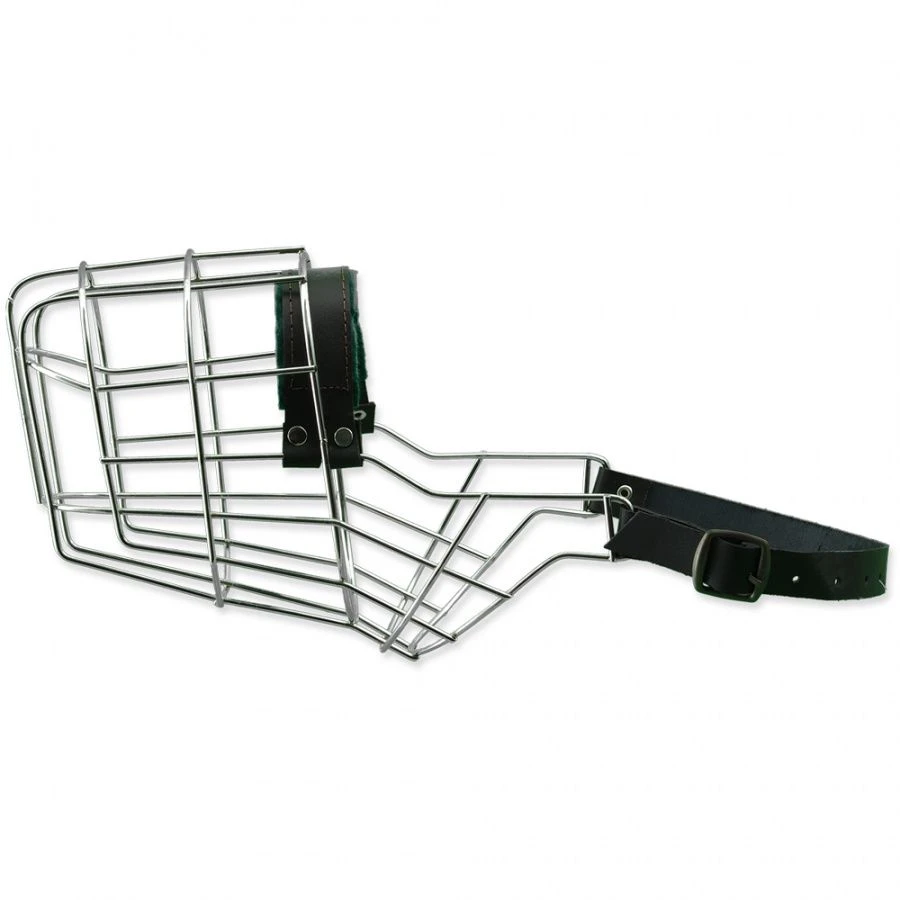 Museau en métal avec lanières de cuir.