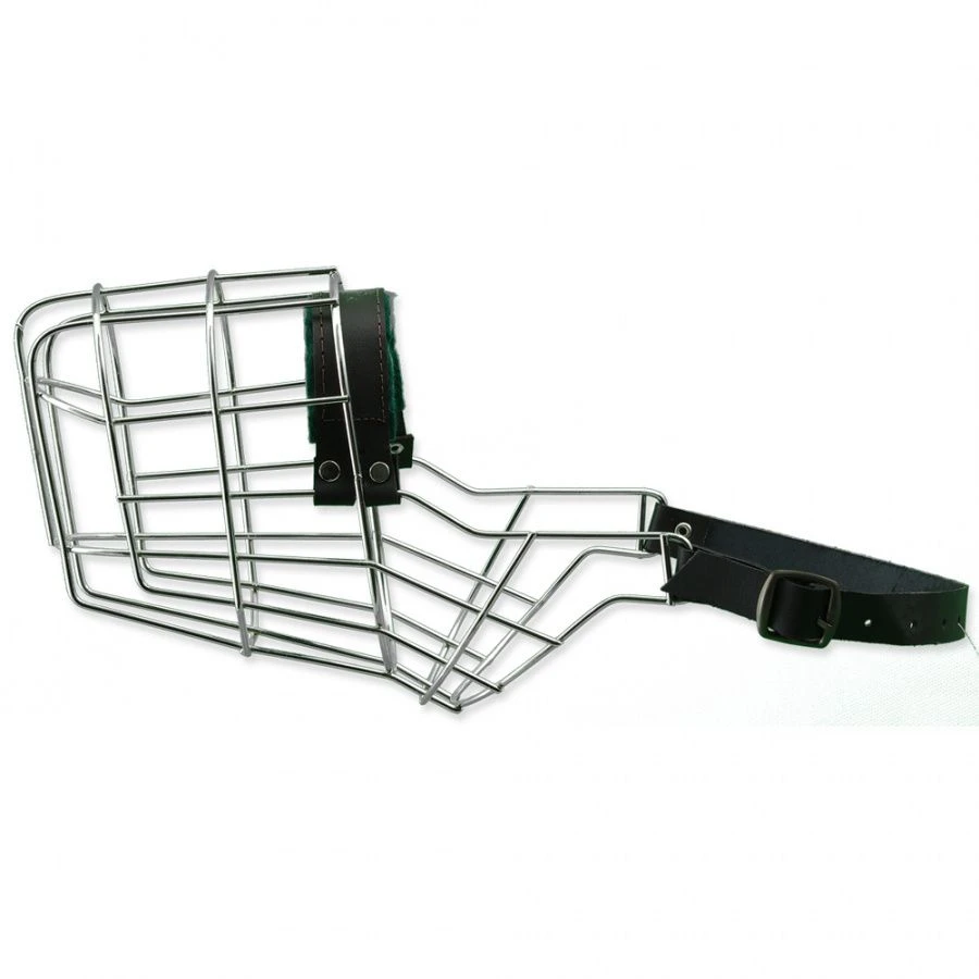 Museau en métal avec lanières de cuir.
