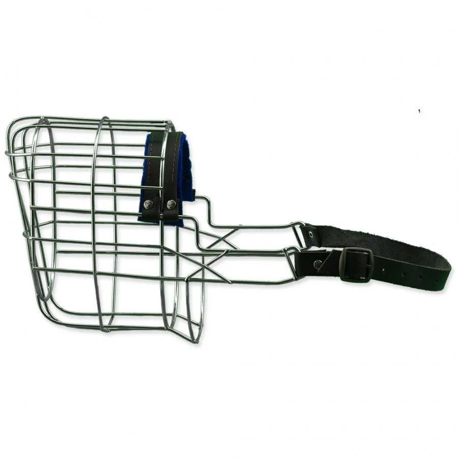 Museau en métal avec lanières de cuir.