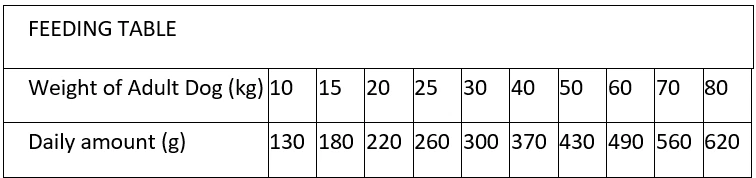 La croquette mesure 1,6 cm et a une forme ronde. Il s’agit d’une croquette savoureuse et facile à mâcher pour les chiens adultes de petite, moyenne et grande taille.