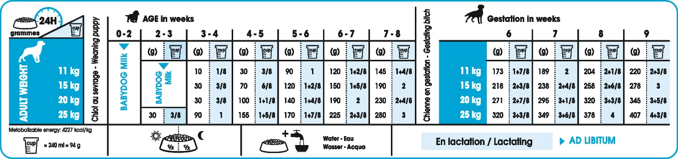 Le profil nutritionnel est adapté aux besoins énergétiques accrus de la chienne à la fin de la gestation et pendant la lactation. - Réhydratation facile